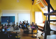 Auf dem Bild sind Menschen zu sehen, die im Dachgeschoss arbeiten.