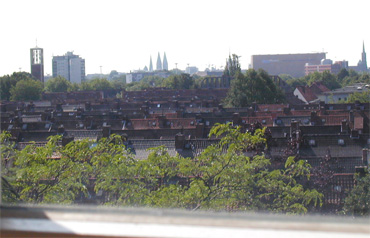 Auf dem Bild ist eine Luftaufnahme über Bremen mit dem Dom zu sehen.