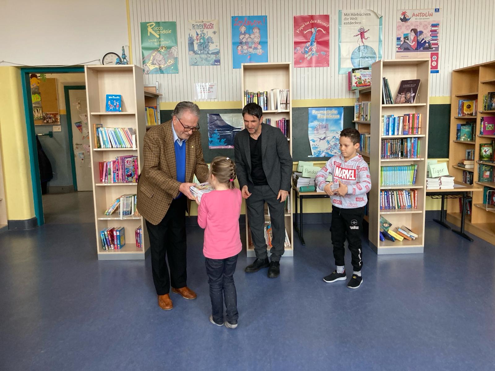 Die Klassensprecherin der Elefanten nimmt die Spende für ihre Klasse entgegen.